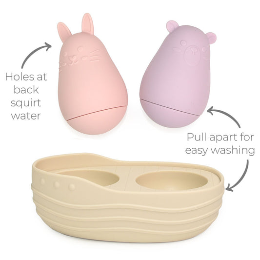 100% Silicone Bath Buddies - Bear and Bunny